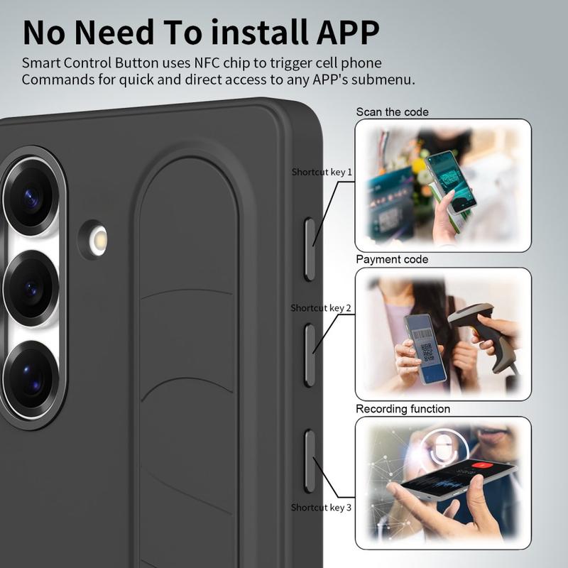 Smart Hybrid Case with Standing Grip for Samsung Galaxy S24+ - NFC Customizable Shortcut Keys, Wristband Kickstand & Alloy Camera Protection