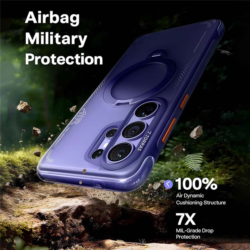 The Torras Ostand Q3 Air MagSafe Case for Samsung Galaxy S26 Ultra combines modern aesthetics with advanced protection. Crafted from high-quality TPU and PC materials, it provides a slim, stylish profile while offering a secure and comfortable grip.