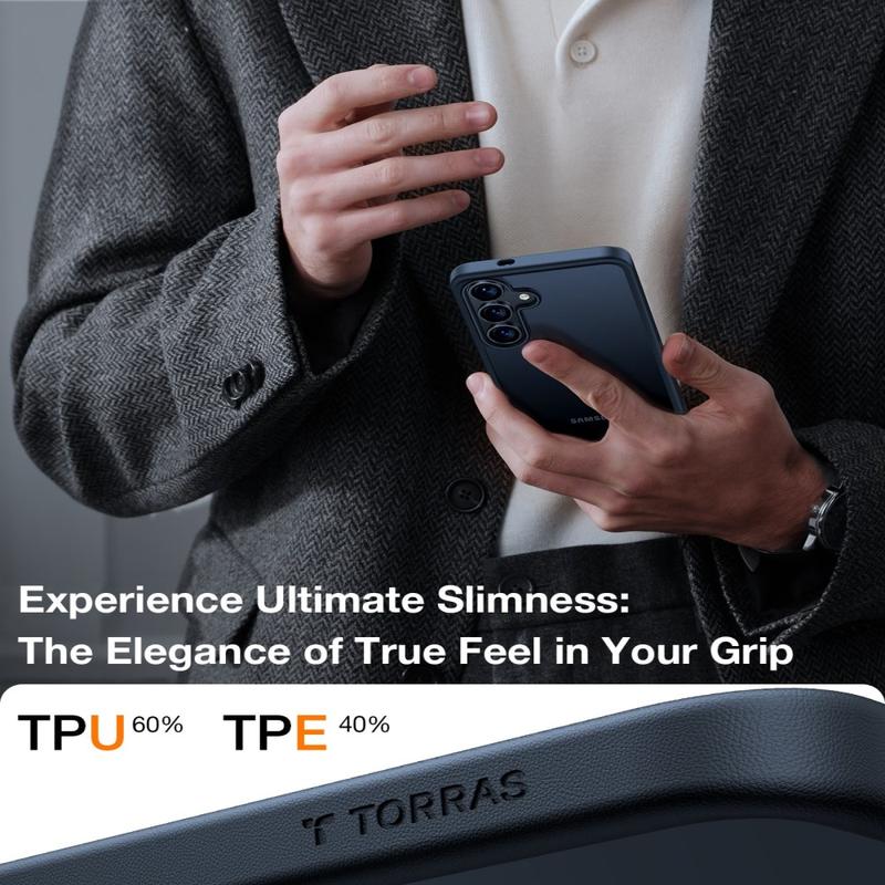 The Torras Skin-Touch case is designed for users who want refined aesthetics combined with dependable everyday protection. Crafted from a dual-material blend of rigid PC and flexible TPU, it delivers durability while maintaining a slim profile and a comfortable, soft-touch feel in the hand.