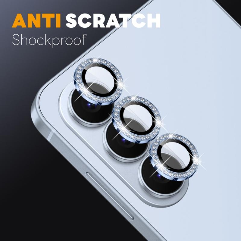 Add sparkle and protection to your Samsung Galaxy S26 with the NORTHJO Camera Lens Protector. Designed with shimmering rhinestones and precision-cut tempered glass, it keeps your camera lens safe from scratches, dust, and impact while adding a touch of elegance and luxury.