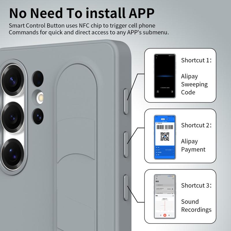 Smart Hybrid Case with Standing Grip for Samsung Galaxy S26 Ultra - NFC Customizable Shortcut Keys, Wristband Kickstand & Alloy Camera Protection