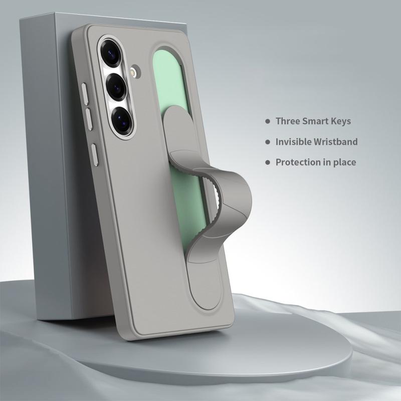 Smart Hybrid Case with Standing Grip for Samsung Galaxy S26 - NFC Customizable Shortcut Keys, Wristband Kickstand & Alloy Camera Protection
