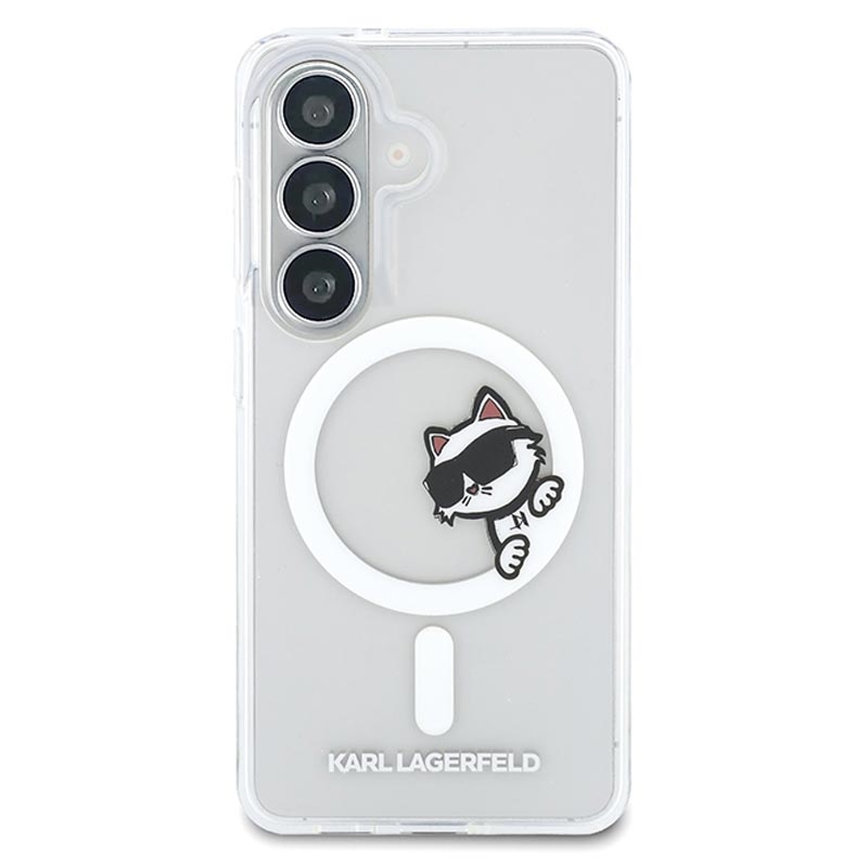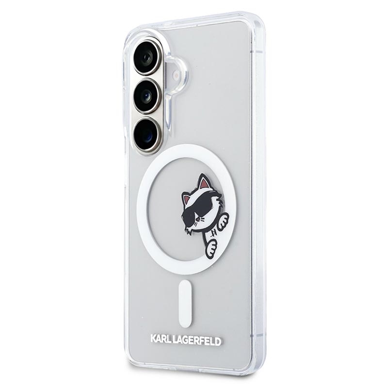 Show your personality with the Karl Lagerfeld IML Choupette Peekaboo Logo magnetic case for Samsung Galaxy S26. This premium hybrid back cover combines fashion and protection, featuring the iconic Choupette Peekaboo motif and signature logo. Built from rigid PC and flexible TPU, it offers reliable everyday protection while maintaining a slim and comfortable feel in the hand.