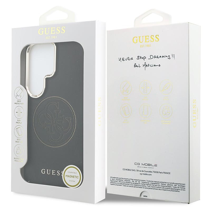 Give your Samsung Galaxy S26 Ultra a premium fashion look with reliable everyday protection. The Guess Perforated 4G Logo MagSafe Case combines durable PU with fine perforation and the signature 4G pattern to elevate your style while keeping your phone protected. Designed to fit the Samsung Galaxy S26 Ultra precisely, it helps guard against scratches, dust, and accidental drops, while keeping all buttons and ports easy to access. MagSafe support means you can use wireless charging and MagSafe accessories without removing the case.