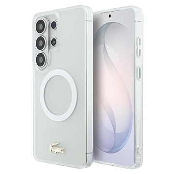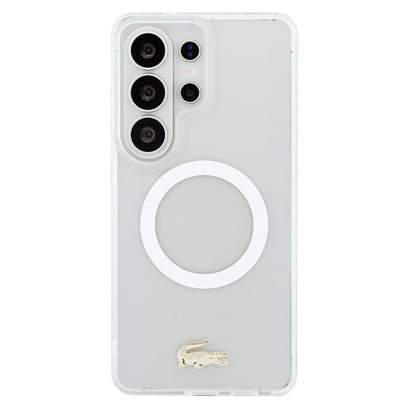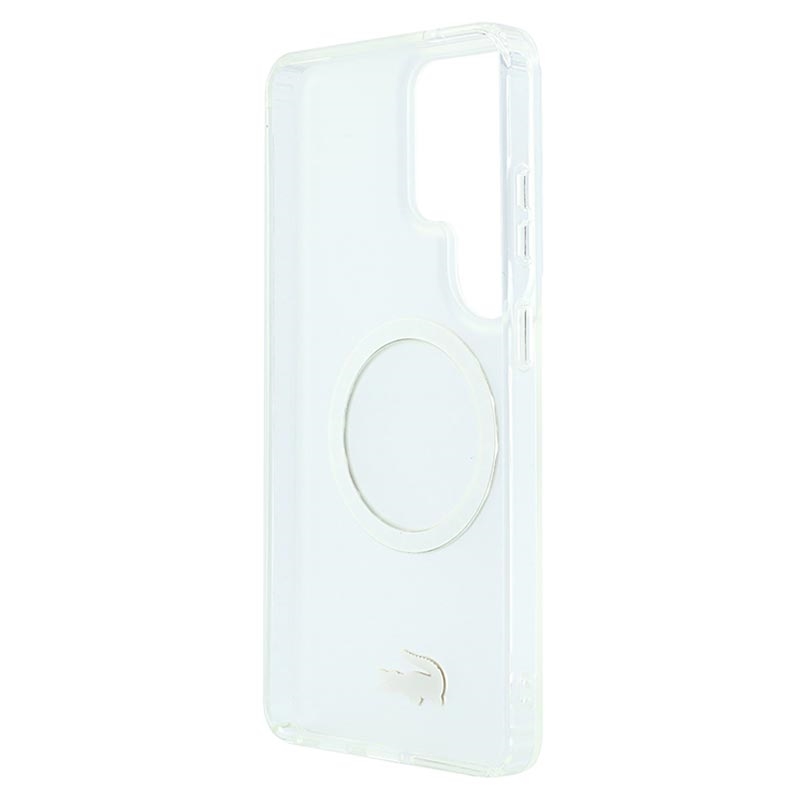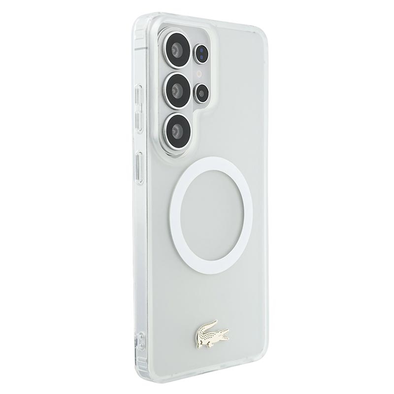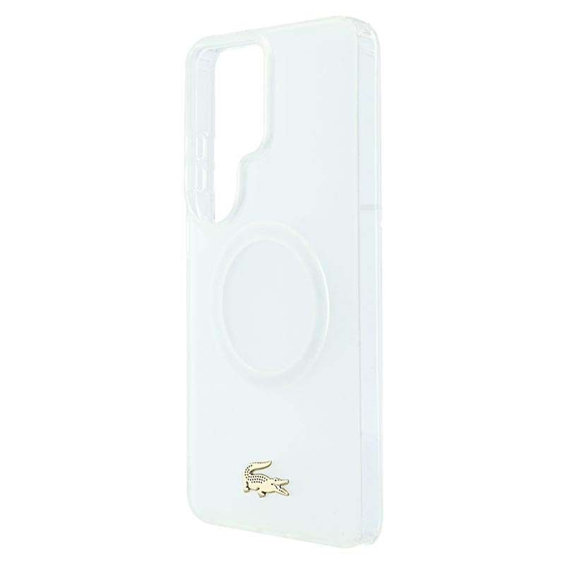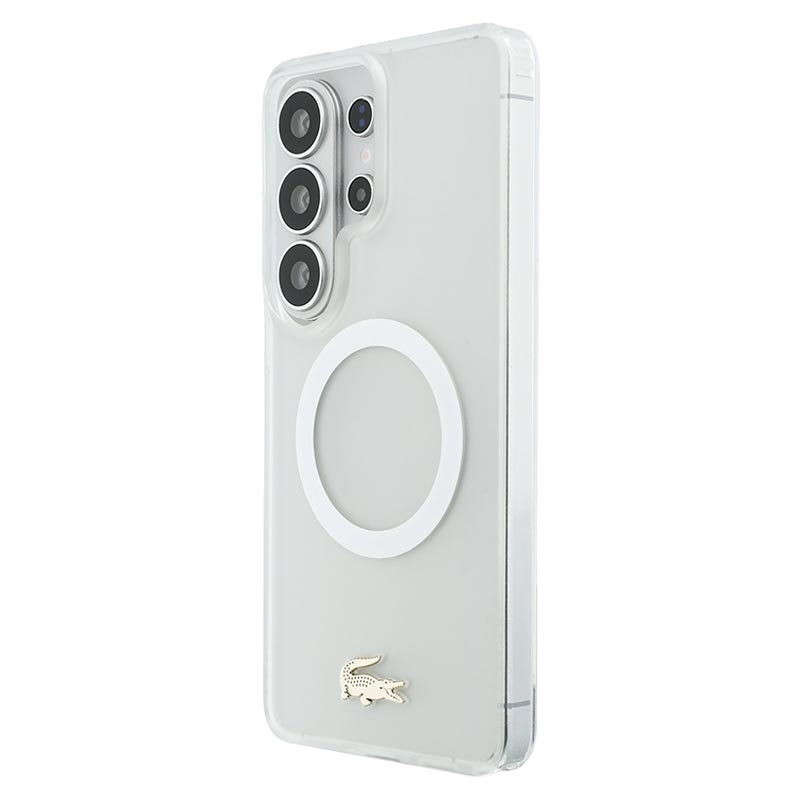 Protect your Samsung Galaxy S26 Ultra in style with the Lacoste Frosted Finish Gold Logo MagSafe Case. Crafted from a durable mix of polycarbonate (PC) and flexible TPU, this case ensures reliable everyday protection while maintaining a sleek, slim profile. The matte frosted finish highlights the iconic gold crocodile logo and elegant gold camera frame, adding a luxurious touch to your device. With MagSafe compatibility, it supports wireless charging and accessories without compromise.