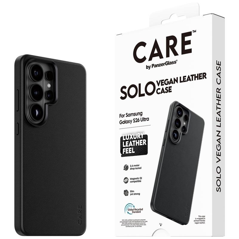 Give your Samsung Galaxy S26 Ultra a refined look with protection you can rely on. The CARE by PanzerGlass Solo Case blends a smooth, animal-friendly polyurethane finish with a slim profile that feels great in hand and complements both casual and business outfits. Clean lines and premium details make your phone look like a statement accessory, while the surface is designed to stay beautiful through daily use.