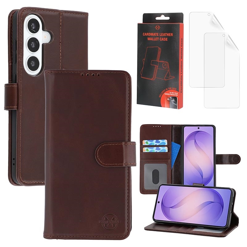 MyTPhone CardMate Premium Leather Wallet Case for Samsung Galaxy S26+ - Stand Feature, Card Holder, Wireless Charging Support, 2x Screen Protector
