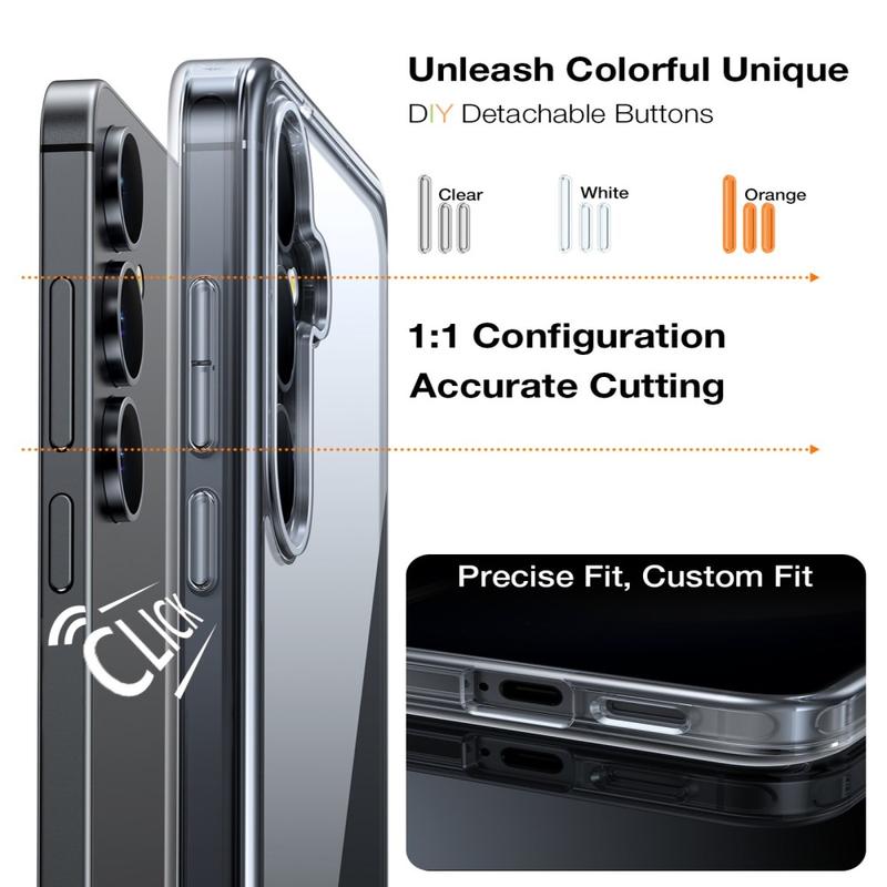 The case includes three interchangeable button colour sets, allowing you to personalise your Samsung Galaxy S26+’s look. Easily swap buttons to match your style, outfit or mood and create a unique, customised appearance.