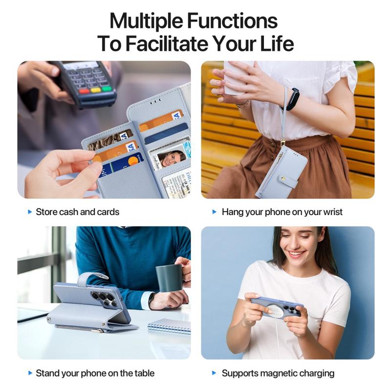 Upgrade your Samsung Galaxy S26 Ultra with the Dux Ducis Lawa Series Magnetic Case, a premium accessory that combines style and functionality. Made from genuine cowhide leather, this black case features a detachable zipper wallet, allowing you to store your essentials securely. The magnetic design ensures easy attachment and detachment, offering flexibility for daily use. With its sleek and durable construction, this case provides comprehensive protection for your device while maintaining a sophisticated look.
