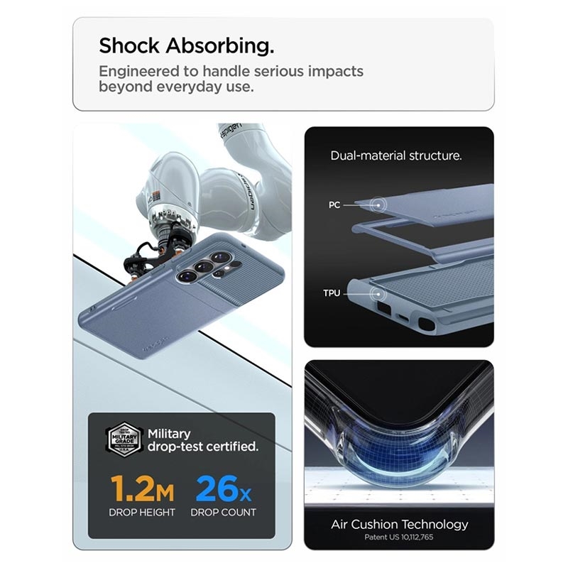 - The Spigen Slim Armor CS case is drop-tested and has Military Grade Drop Protection MIL-STD 810G-516.6