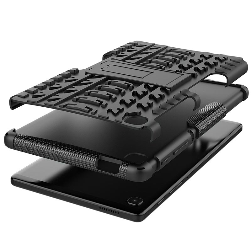 The hard outer layer makes your Samsung Galaxy Tab A7 Lite less susceptible to bending, while the shock-absorbing inner layer protects it from drops and impacts. Upon that, the built-in kickstand enables comfortable video watching on your Samsung Galaxy Tab A7 Lite.