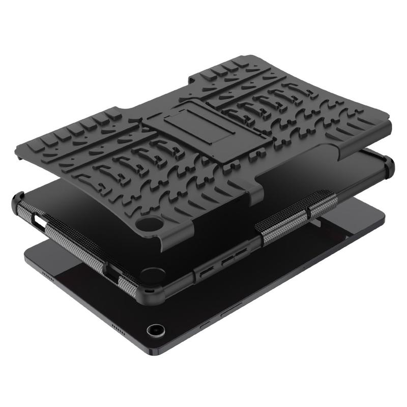 The hard outer layer makes your Samsung Galaxy Tab A9+ less susceptible to bending, while the shock-absorbing inner layer protects it from drops and impacts. Upon that, the built-in kickstand enables comfortable video watching on your Samsung Galaxy Tab A9+.