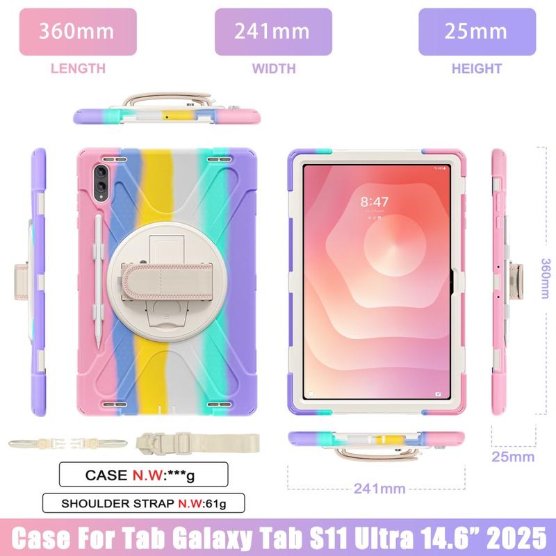 Heavy Duty 360 Rotating Case with Hand & Shoulder Strap for Samsung Galaxy Tab S11 Ultra