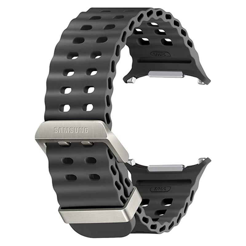 Engineered for the Samsung Galaxy Watch Ultra, this genuine Samsung Marine Band couples a corrosion-proof titanium buckle with a ripple-profile HNBR strap that channels water away and dries in minutes—ideal for swimming, triathlon training and everyday wear.
