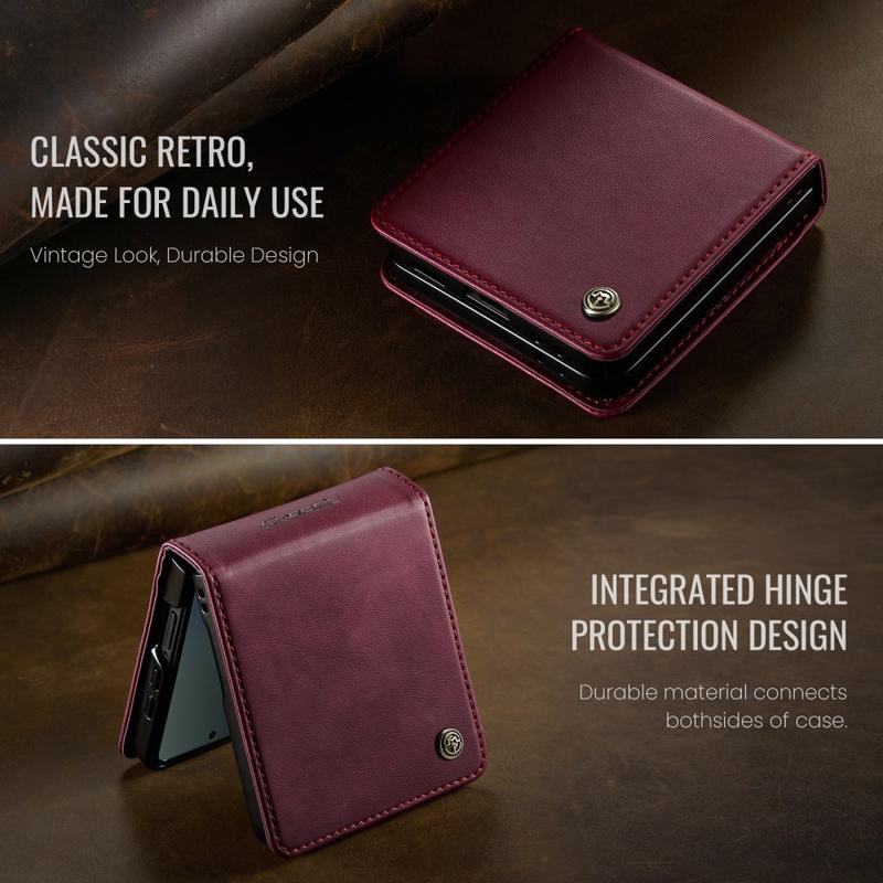 The CASEME 033 Series Wallet Case for Samsung Galaxy Z Flip7 is crafted from calf texture polyurethane combined with TPU, offering full-body protection against scratches, impacts, and daily wear while maintaining a premium, elegant look.