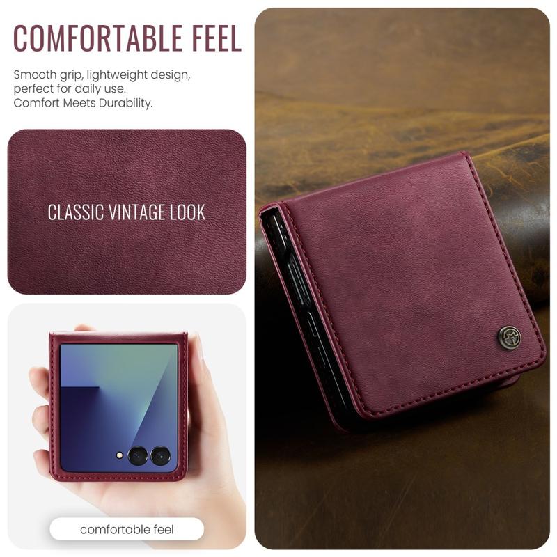Caseme 033 Calf Texture Wallet Case with RFID Blocking and Stand Function for Samsung Galaxy Z Flip7