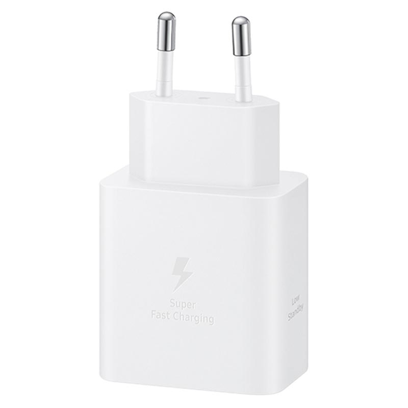 Charge your Galaxy devices at incredible speed with the original Samsung USB-C travel charger. This ultra-fast power adapter delivers the maximum power of 45W to compatible devices, but it can also adapt to the capacities of other models. It protects against overcurrent, short circuits, temperature fluctuations, and so much more, so your devices are safe while charging.