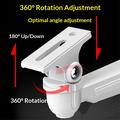 The bracket allows 360° horizontal rotation and 180° vertical adjustment, enabling comprehensive camera positioning. This wide adjustment range helps eliminate blind spots and ensures optimal coverage of the monitored area.