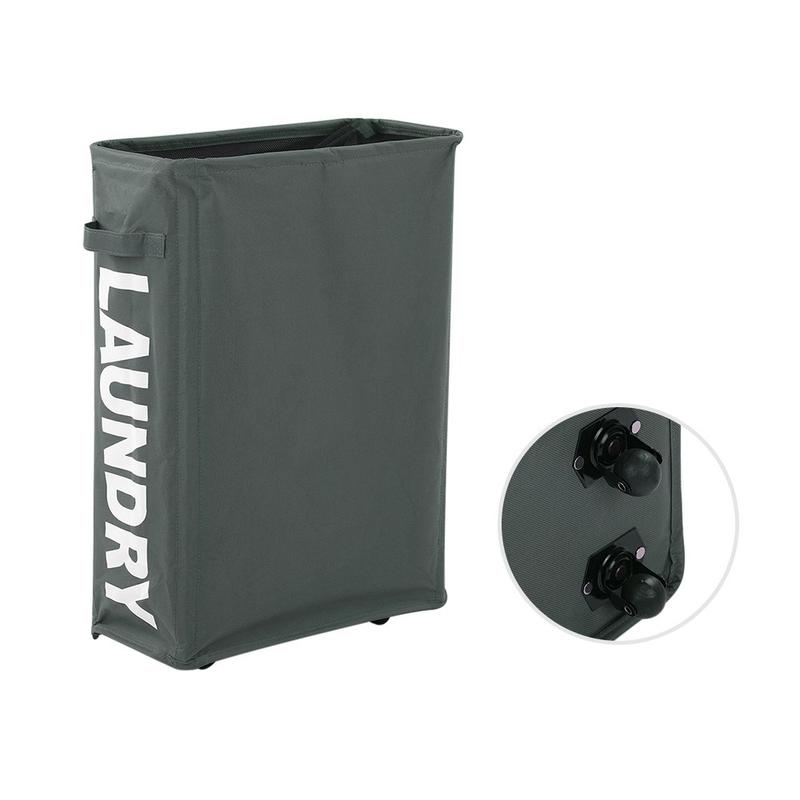 Slim Foldable Oxford Laundry Basket with Wheels & Mesh Drawstring Lid - Corner Dirty Clothes Hamper