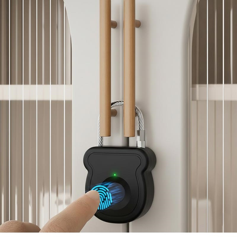 This smart padlock uses a semiconductor fingerprint sensor capable of storing up to 20 fingerprints. The self-learning algorithm improves accuracy over time, ensuring quicker and more reliable unlocking with each use.