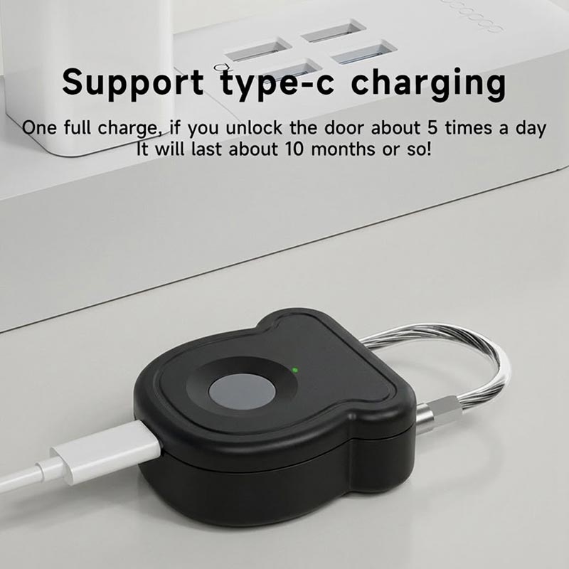 Its low-power design provides up to 10 months of use (approx. 5 unlocks per day) on a single charge, making it highly reliable for long-term security needs.