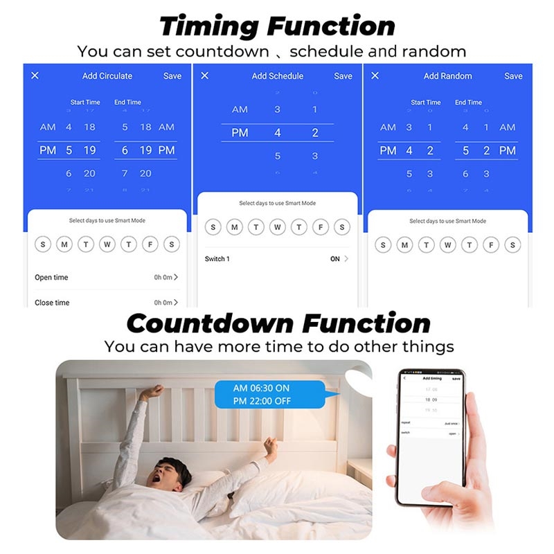 Create personalized routines — for example, turn on the living room fan at sunrise or switch off your child’s night light automatically at bedtime. The countdown timer and “set and forget” features ensure you never have to worry about leaving devices running again.