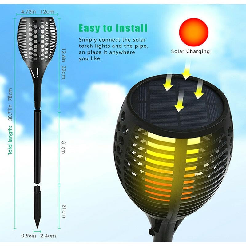 These Solar Powered Stake Lights bring warm, flickering flame effects to your garden, pathway, patio or backyard. With 96 LEDs, solar charging technology and waterproof construction, they automatically illuminate at night to create an inviting and decorative outdoor atmosphere.