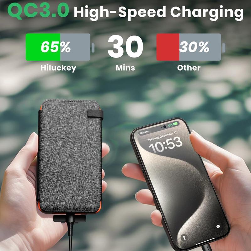 If you need reliable portable power with added solar backup, this power bank offers both capacity and versatility. The large battery can charge several devices before needing a recharge, while the foldable solar panels provide a way to replenish power when electricity is unavailable. Combined with fast charging and multiple ports, it's a practical solution for both outdoor adventures and everyday backup power.