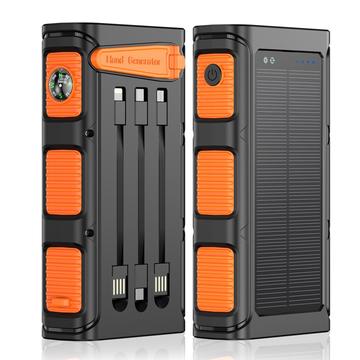 20000mAh Hand Crank Solar Power Bank with PD 20W Fast Charging, LED Flashlight and Built-In Cables