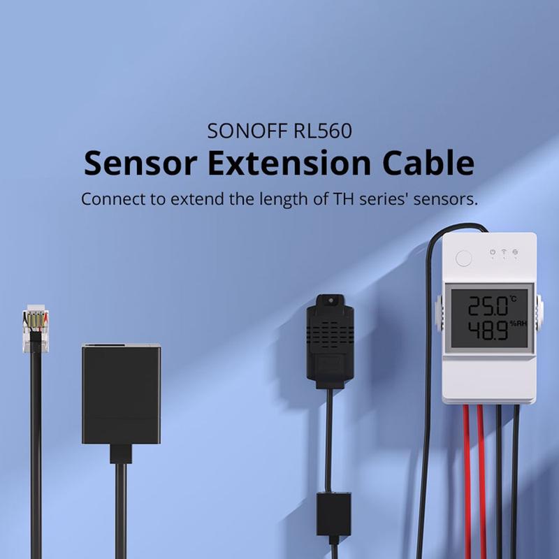 Extend your sensor placement for more flexible temperature and humidity monitoring with the Sonoff RL560 extension cable. Designed for Sonoff TH series devices like TH16 and TH20, this 5m RJ11 cable works with compatible RJ11 sensors such as THS01 and DS18B20. It helps you position sensors further away from the switch module for better measurement accuracy in rooms, cabinets, greenhouses, or equipment areas. The RJ11 connector supports hot-plugging for a stable and convenient connection.