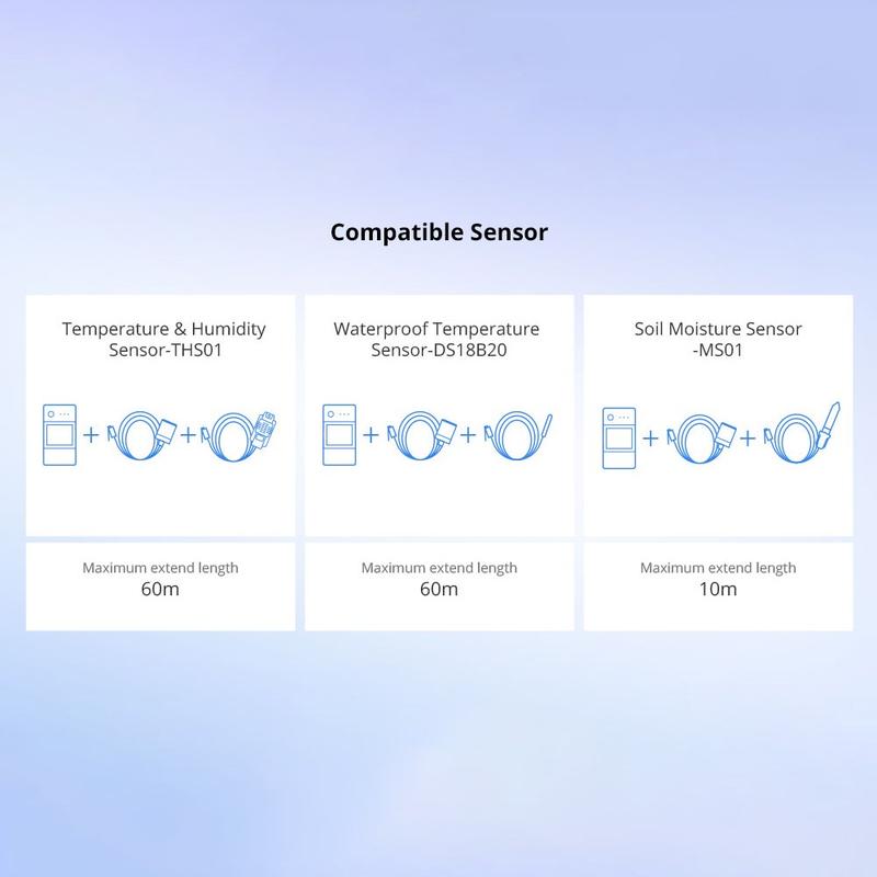 - Works with Sonoff RJ11 sensors such as THS01 and DS18B20 with RJ11 jack