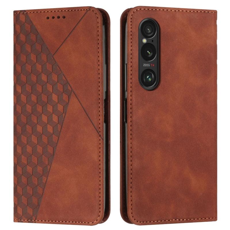 Rhombus Pattern Wallet Case with Magnetic Closure for Sony Xperia 1 VI