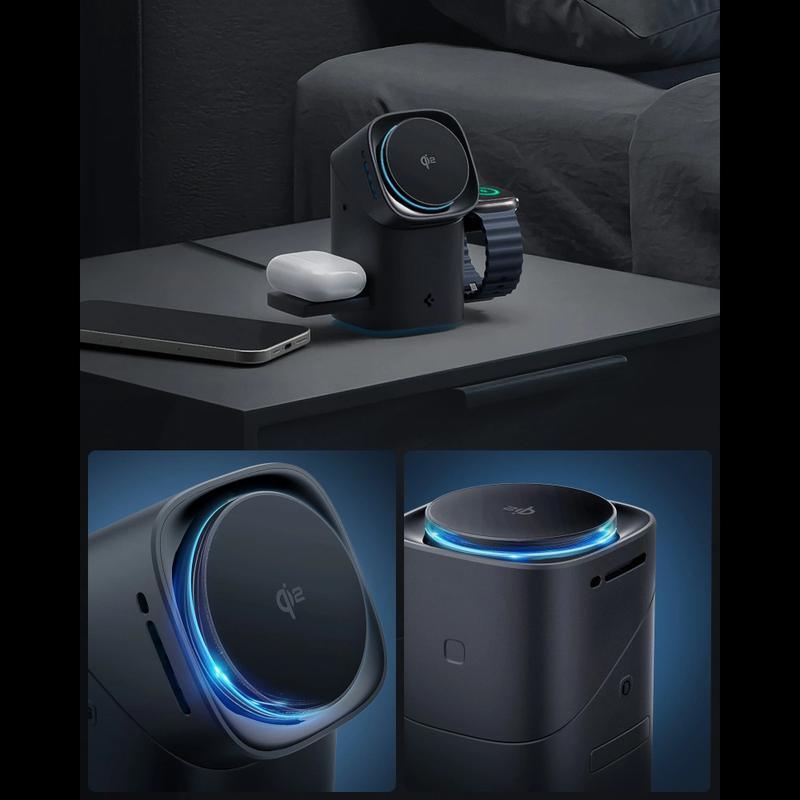 Spigen Essential EF223MS 3-in-1 Qi2 MagSafe Wireless Charger - Rotary iPhone Stand/Charger, AirPods & Apple Watch Charging Dock