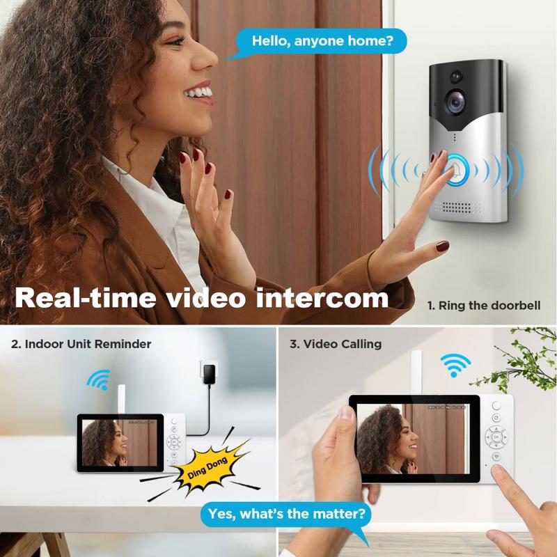 Enhance your home security with the SRIHOME DH051_002_008 Smart Wireless Doorbell Set, a modern and energy-efficient solution for convenient communication and monitoring. Featuring a 4MP HD video system, WiFi 6 connectivity, and a 5-inch color display, it ensures clear visuals and smooth performance. With two-way audio, support for multiple doorbells or cameras, and local network functionality, this system delivers reliable operation even during internet outages. Ideal for households seeking smart, secure, and easy-to-use intercom functionality.
