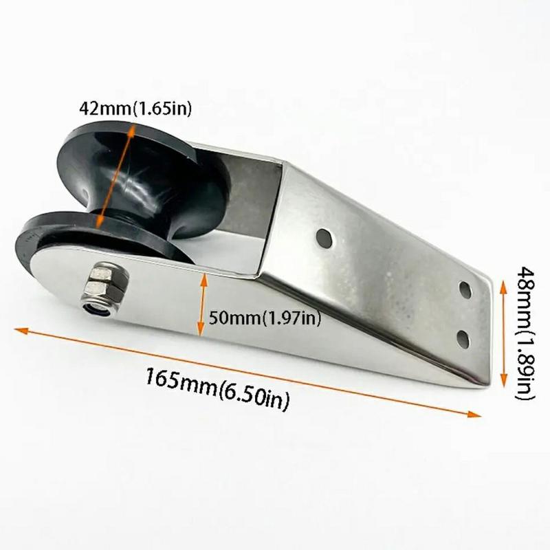 Upgrade your boat s anchoring setup with this stainless steel boat anchor roller fixed bracket, designed to support smoother and more controlled anchor handling. Built for marine use, it combines a strong stainless steel construction with a double sheave pulley system that helps guide the rope more efficiently. It is a practical hardware accessory for yachts and other boats where durability, stability and dependable anchor support matter.