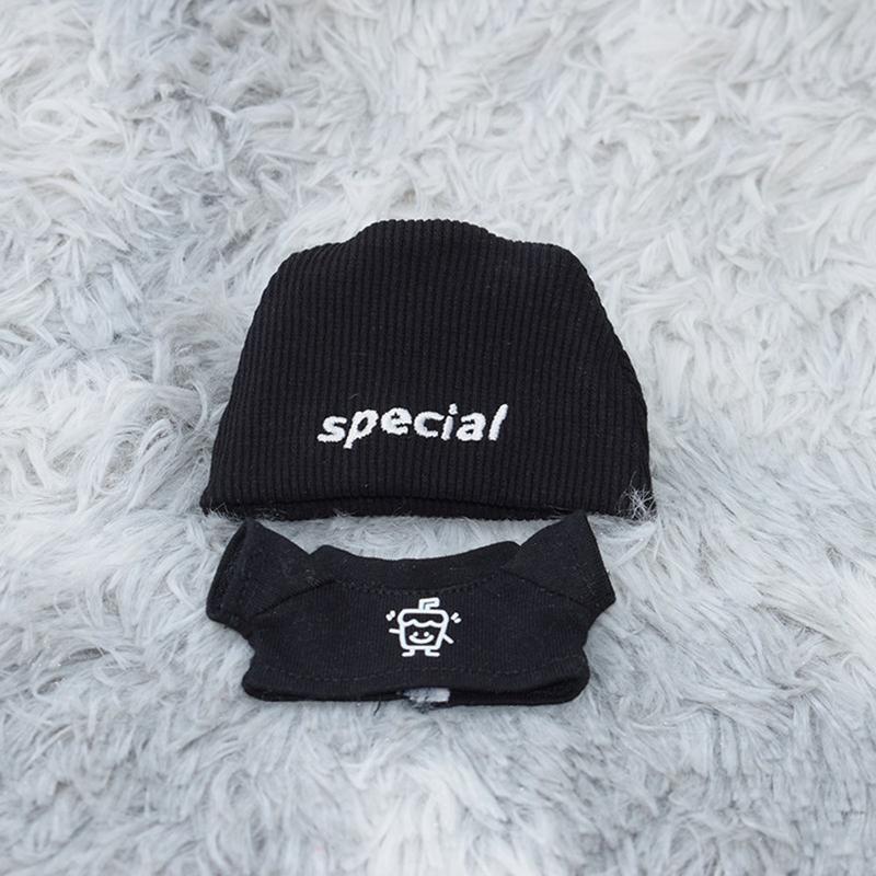 Street Style Clothes for Labubu Doll 17cm – Knit Hat & Graphic Tee Costume