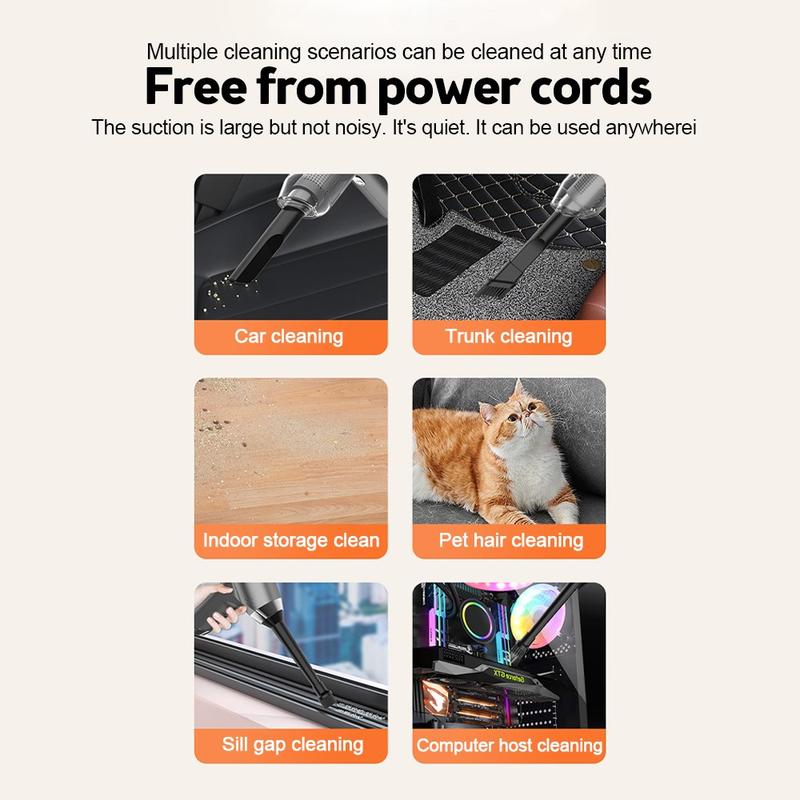 The SUITU ST-6617C handheld vacuum cleaner delivers powerful cleaning performance in a lightweight, portable design. Equipped with a high-torque brush motor, it provides consistent suction strength for deep cleaning tasks, including dust, paper scraps, particles, and pet hair. With two adjustable suction levels (9000Pa / 12000Pa), it adapts easily to everyday messes or heavy-duty jobs like carpets and upholstery. Weighing under 350g, it’s ultra-portable and easy to store. The built-in 4000mAh lithium battery supports long-lasting use, while USB-C fast charging ensures quick, convenient recharging. Perfect for both car interiors and home cleaning, the ST-6617C combines strong suction power with effortless handling.