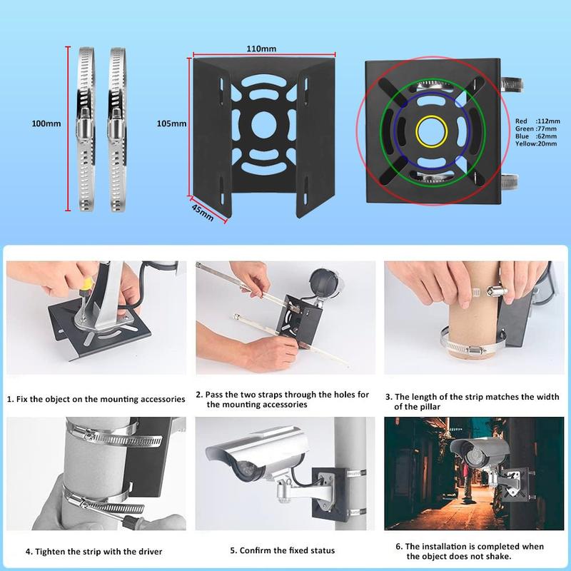 The security camera holder pole clamp is designed to provide a secure and adjustable mounting solution for surveillance cameras in a wide range of environments. Its clamp-based installation allows fast setup without drilling, making it ideal for both temporary and permanent monitoring needs.