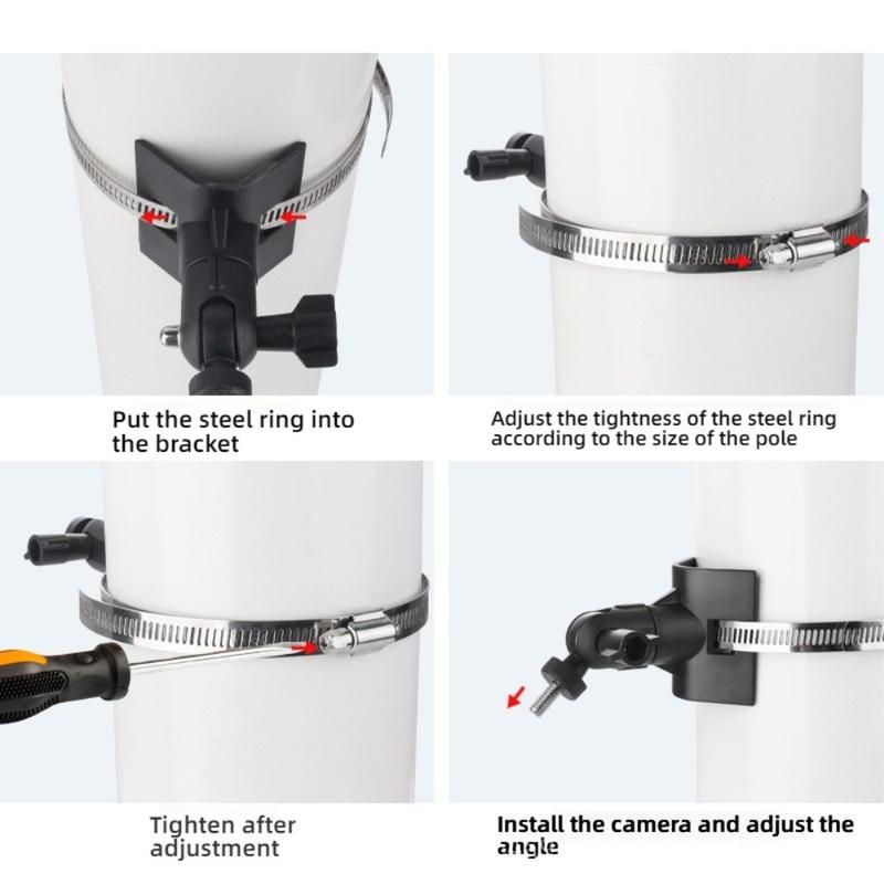 Equipped with a stainless steel clamp, the bracket offers strong gripping force and long-term stability. It securely holds the camera in place on poles or round structures, even in outdoor conditions.