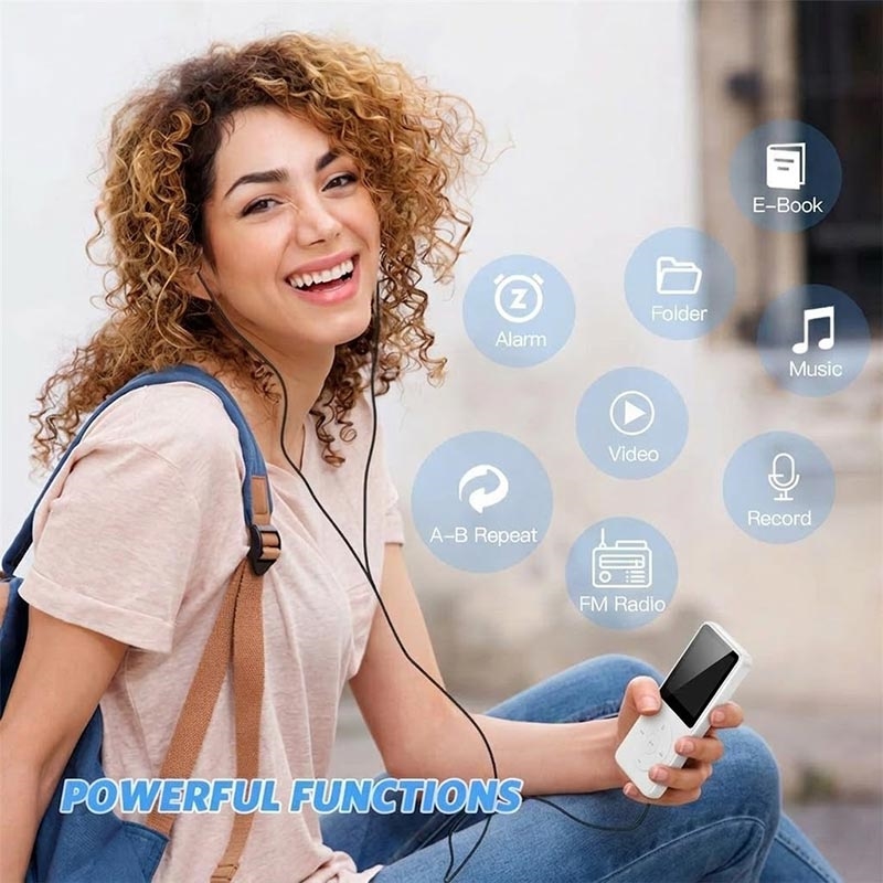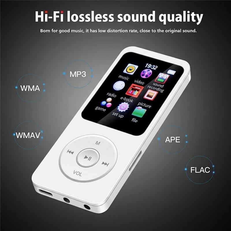 Keep your music and media in your pocket with the T1 portable MP4 music player. Compact and lightweight, it is designed for everyday listening with support for multiple audio formats including APE and FLAC for lossless playback. Beyond music, it also includes video playback, FM radio, e-book reading, and voice recording, making it a handy all-in-one entertainment device for commuting, travel, workouts, or study.