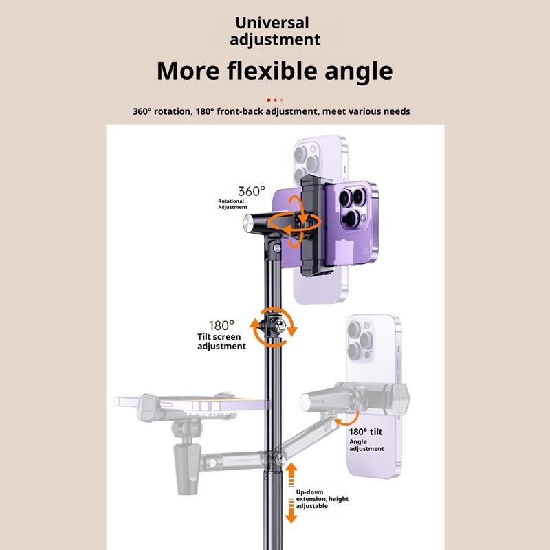 - Adjustable Height & Angle - The extendable metal rod allows versatile positioning and the perfect angle for overhead shots, livestreams, or desk recordings.