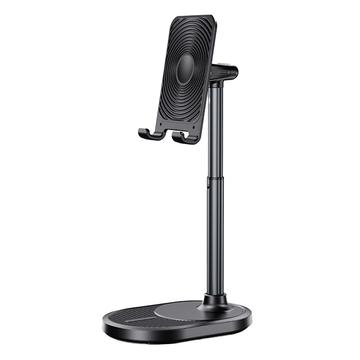 Designed to support devices from 4 to 9.7 inches, the stand is compatible with smartphones and tablets, including larger models such as iPhone Pro Max series and compact tablets.