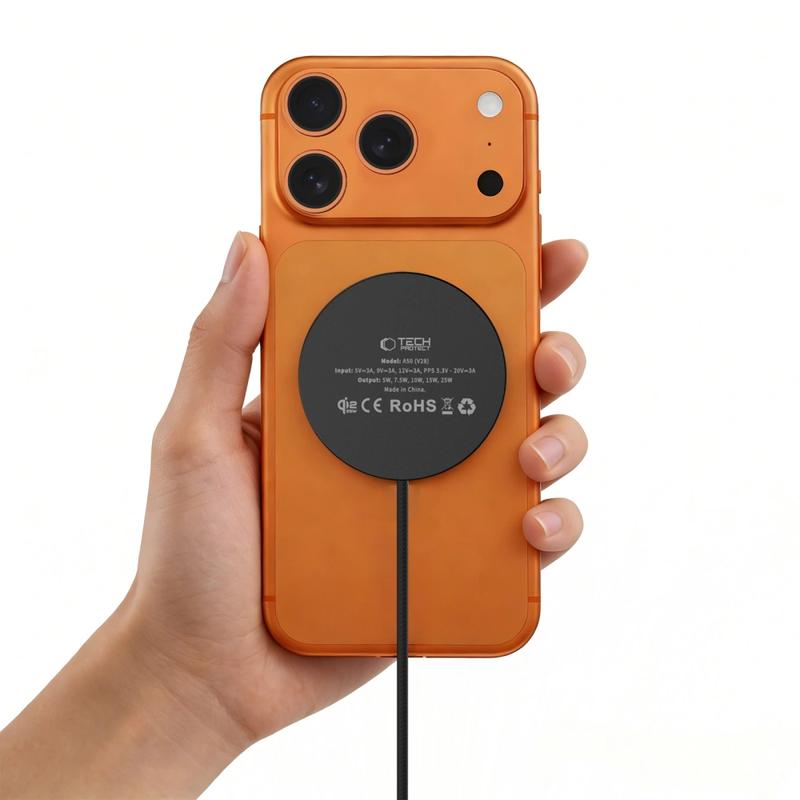 Charge your phone faster and more conveniently with the Tech-Protect A50 magnetic wireless charger. This compact charger supports the latest Qi2.2 standard and delivers up to 25W wireless charging for compatible devices, while the built-in magnetic mount helps keep your phone perfectly aligned for stable and efficient charging.
