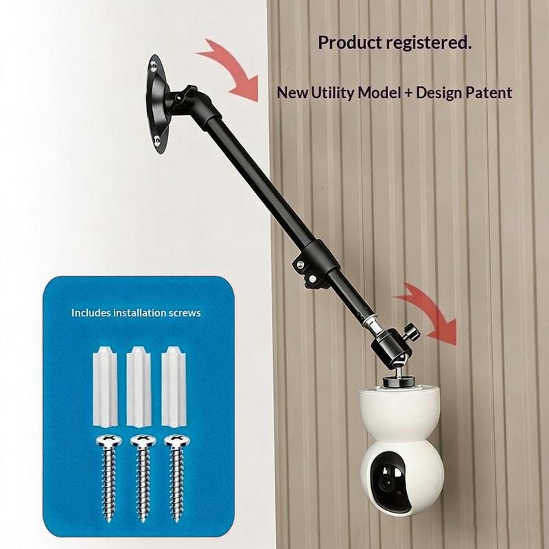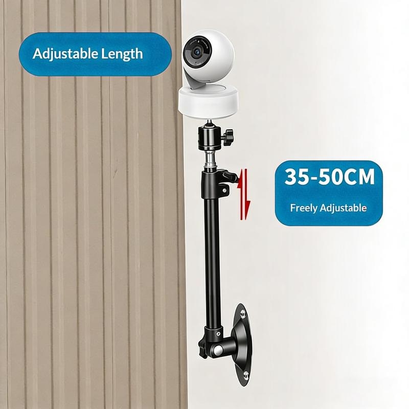 360 Degree Rotating Security Camera Mount - 35-50cm Telescopic Carbon Steel Bracket for Indoor & Outdoor CCTV Camera