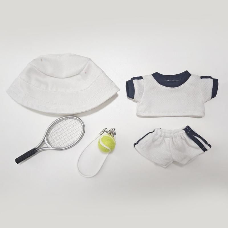 Tennis Outfit for Labubu Doll 17cm - 5 Pcs. - T-Shirt, Shorts, Hat, Tennis Racket, Tennis Ball Charm