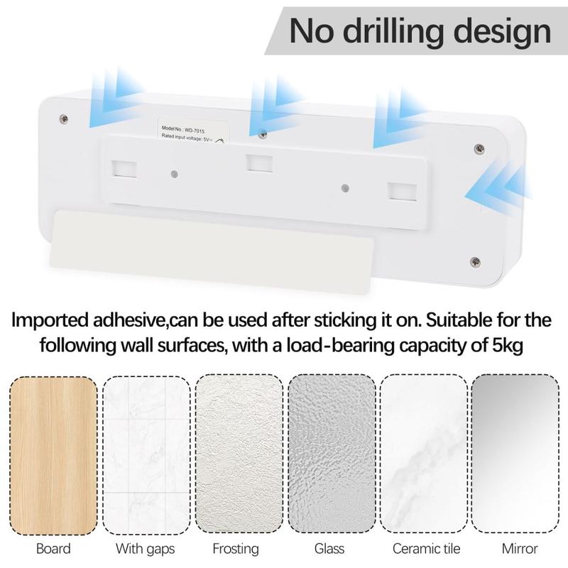 - Wall-Mounted Design - Easy adhesive installation saves space, requires no drilling, and protects bathroom walls.