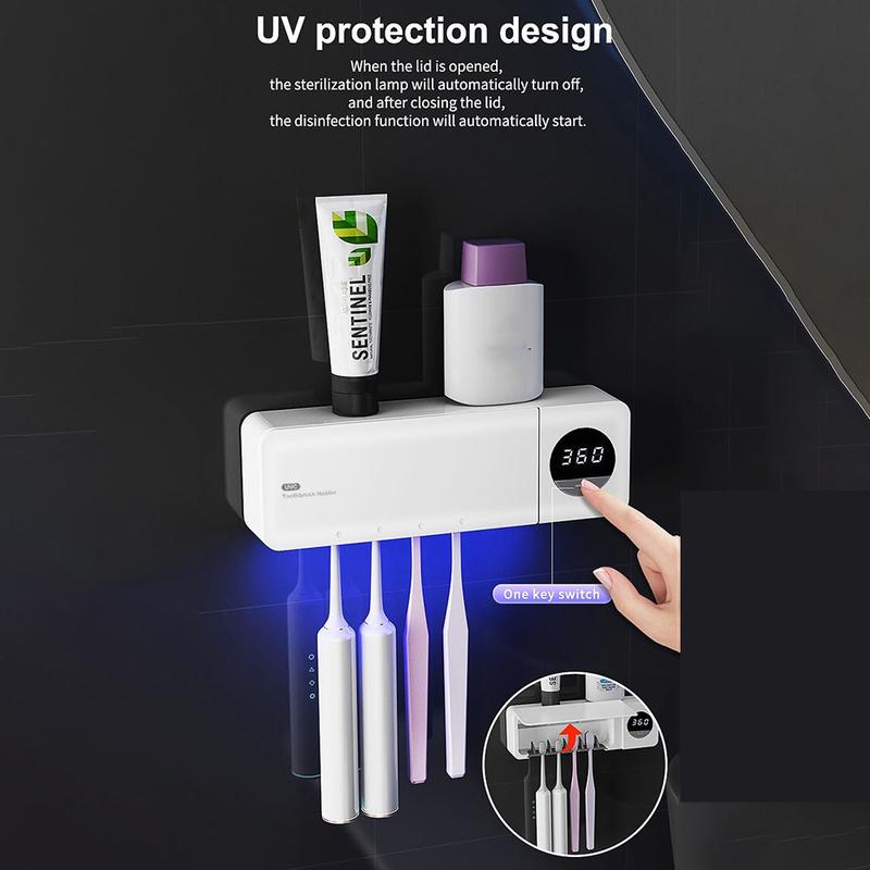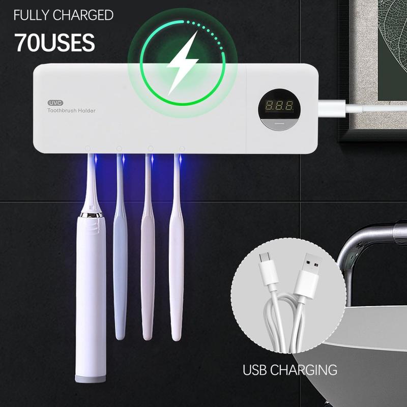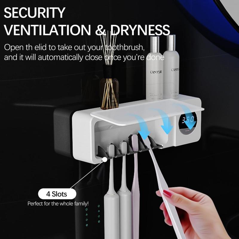 Toothbrush Sanitizer UV Sterilizer - Wall-Mounted Toothbrush Holder with Auto Sensor & Digital Display