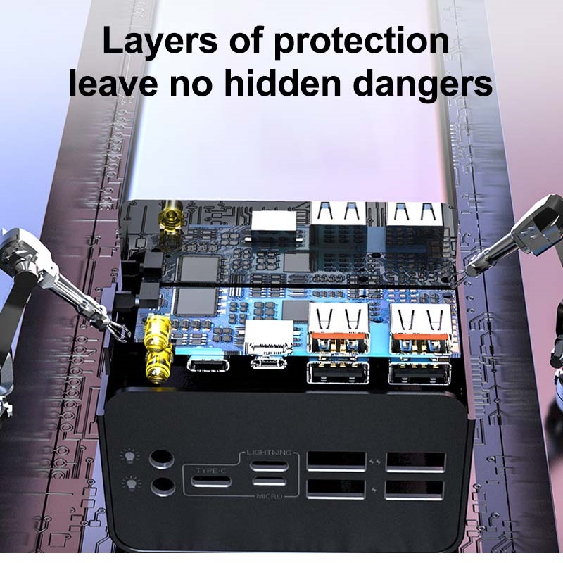 - 50000mAh capacity, enough to recharge your devices multiple times