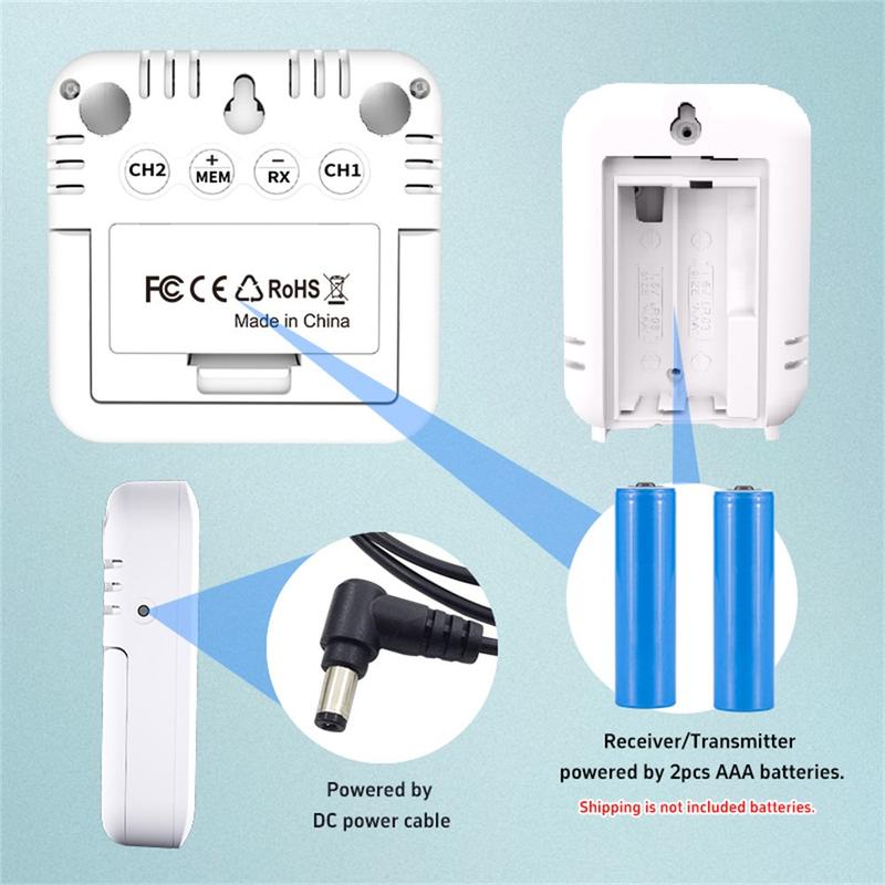 - Receiver power: DC power cord or 2 x AAA batteries (not included)