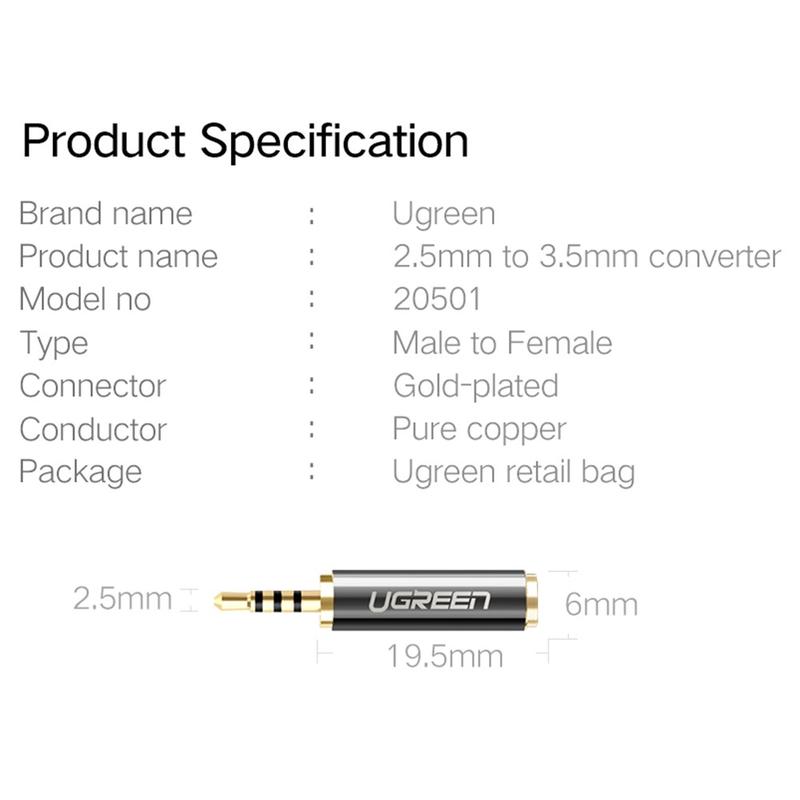 Ugreen 2.5mm Male to 3.5mm Female Stereo Audio Adapter with Gold Plated Connectors